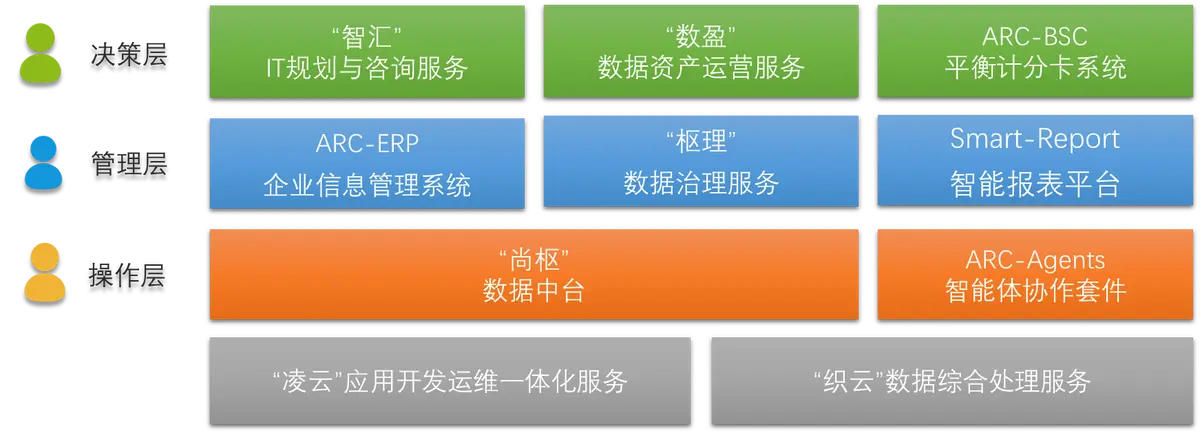 在決策層,“智匯”IT規(guī)劃與咨詢服務(wù),憑借專業(yè)團(tuán)隊(duì)對行業(yè)趨勢和技術(shù)生態(tài)的深度洞察,為企業(yè)量身定制契合發(fā)展戰(zhàn)略的IT架構(gòu)藍(lán)圖,明晰數(shù)字化路徑;“數(shù)盈”數(shù)據(jù)資產(chǎn)運(yùn)營服務(wù),挖掘企業(yè)數(shù)據(jù)價(jià)值,將分散數(shù)據(jù)轉(zhuǎn)化為可運(yùn)營、能創(chuàng)造效益的資產(chǎn),驅(qū)動業(yè)務(wù)創(chuàng)新;ARC - BSC平衡計(jì)分卡系統(tǒng),以戰(zhàn)略為導(dǎo)向,從財(cái)務(wù)、客戶、內(nèi)部流程、學(xué)習(xí)與成長等維度,量化指標(biāo)、監(jiān)控進(jìn)度,助力科學(xué)決策 。